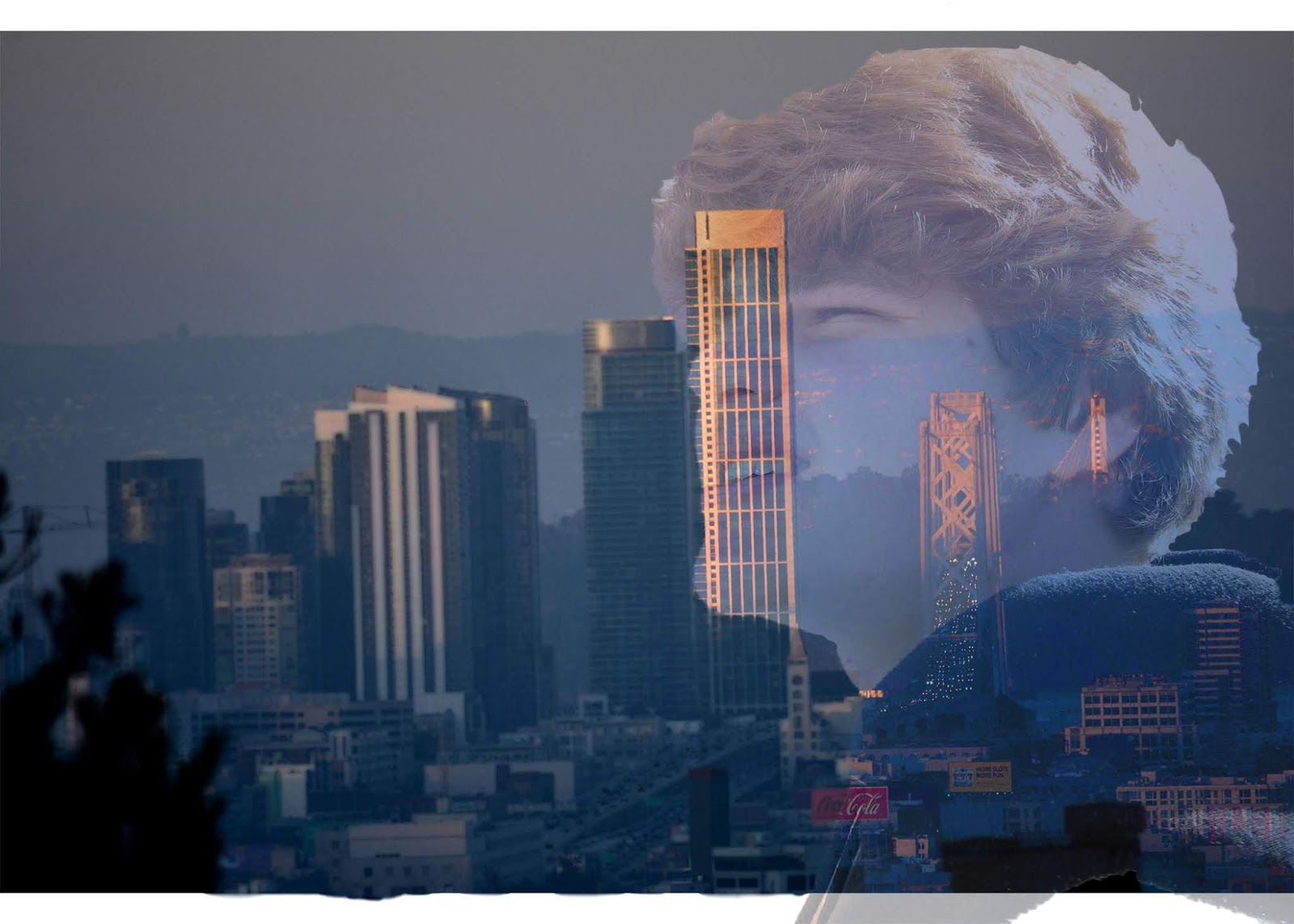 For this project I was tasked with the job of mimicking the photographic style of professional photographer Jasper James. His work combines Cityscape photography with portraits, he does this through edited them and combining the two in Photoshop. The way the pictures are ordered below is the order that they were created in, so naturally there should be some difference in look between the first and last pictures. At first I found Photoshop hard to work with and I was struggling to edit the pictures well and efficiently, however I now feel that I have a pretty good grasp on how to edit them, as seen in the bottom pictures. My method is to combine the two chosen pictures, then create the outline of the head and edit the base picture (the cityscape) to increase the saturation and color where the head goes and to decrease it everywhere else. After this I add the portrait in and lightly blur everywhere except for where the head goes, this makes so that you view the city though the face of the subject.
